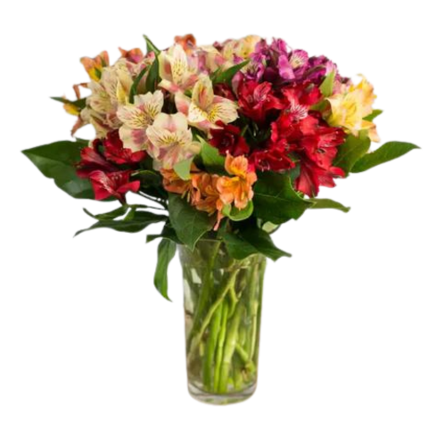 A timeless symbol of friendship, alstroemeria expresses gratitude to those near to your heart. This floral arrangement features a rainbow of these cheerful alstroemeria flowers overflowing in a clear vase.