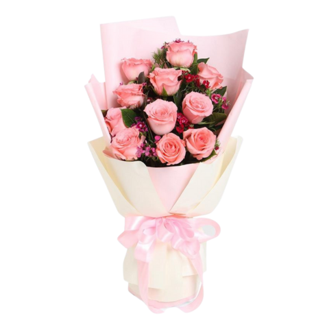 This brilliant bouquet features 12 pink vibrant roses and fresh greenery. The result is perfect for any occasion, be it a day-brightener or a Valentine.